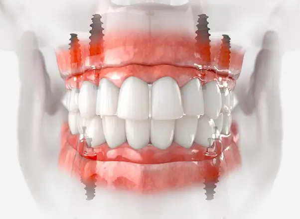 Implantate ermöglichen, wenn gewünscht, auch eine festsitzende Versorgung des Ober – und Unterkiefers. Diese Versorgung fühlt sich an, wie Ihre eigenen Zähne.