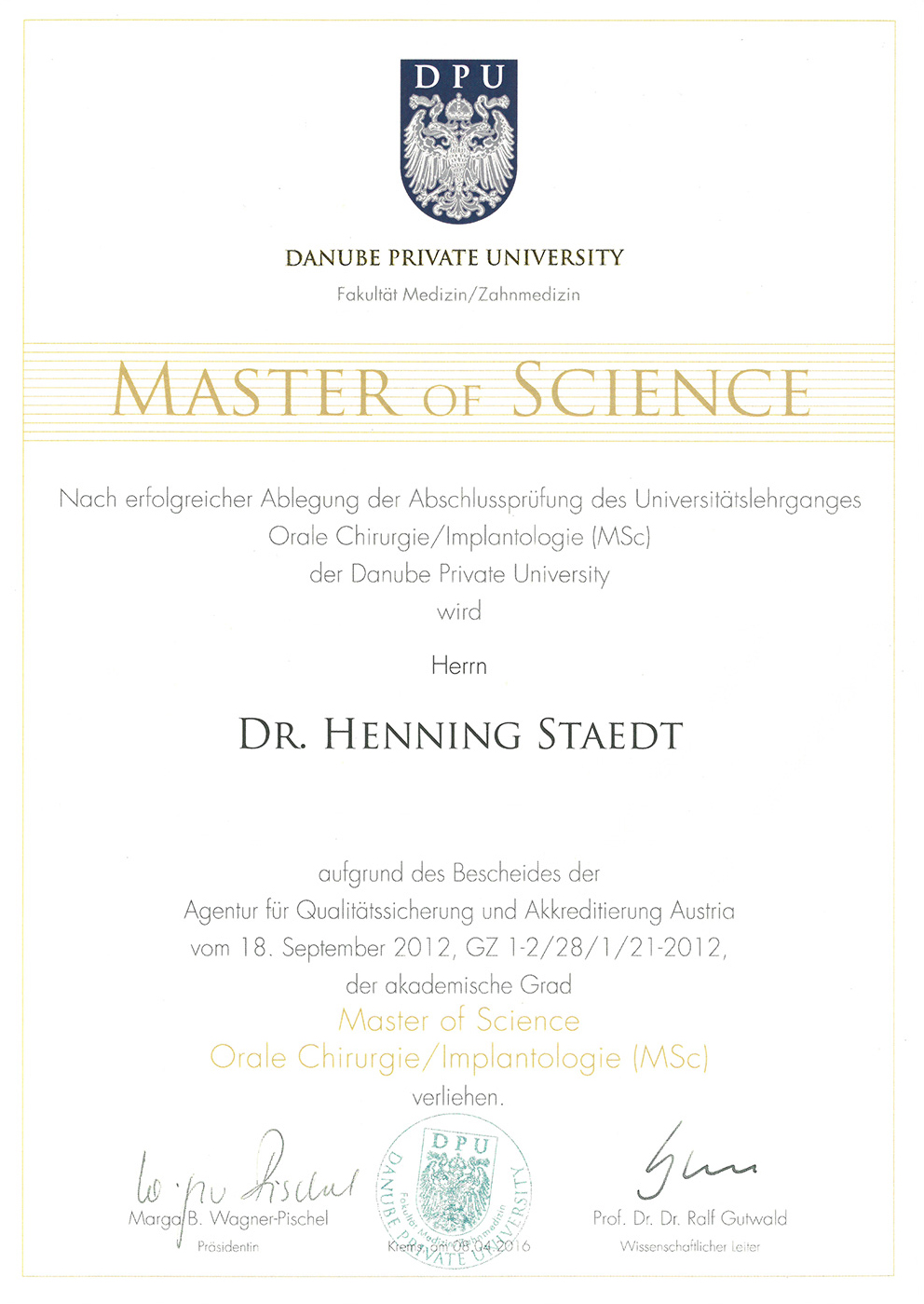 1. Masterstudium Oralchirurgie und Implantologie